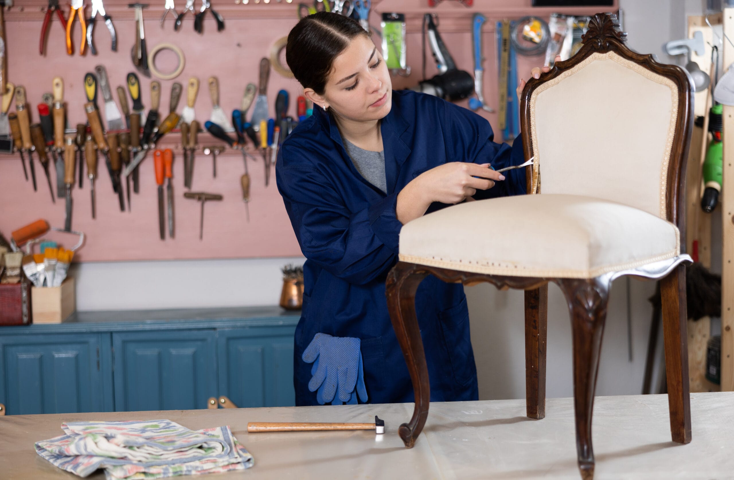 Als TapeziererIn und DekorateurIn entwirfst du, fertigst und reparierst du Polstermöbel und stellst Bettwaren her. Zudem übernimmst du wichtige Aufgaben in der Raumgestaltung. Da die Polstermöbelindustrie die handwerkliche Fertigung zunehmend verdrängt hat, liegt der Fokus deiner Arbeit heute eher auf der Reparatur von Polstermöbeln.
